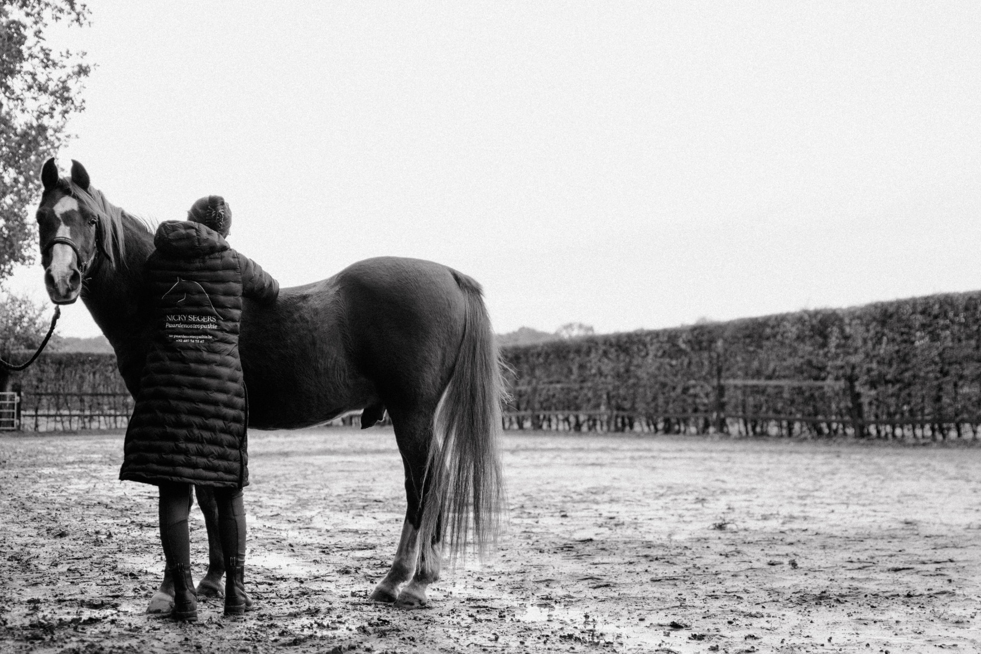 - Zorg voor een proper en droog paard. Indien het paard op de weide staat en het regent, kan je hem dus best enige tijd voor de behandeling al op stal zetten.